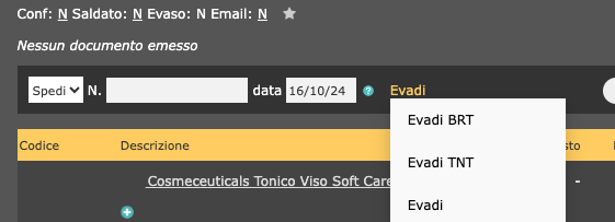 Il flag Evaso assumerà il nuovo valore L (Lettera di vettura) che diventerà E (Evaso) dopo l'invio della conferma di spedizione.