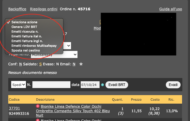 1. Verifichiamo che tra i prodotti ordinati non vi siano prodotti impossibili da reperire che sono stati venduti per errore. Non importa che il prodotto sia già disponibile in magazzino o che sia da ordinare, l'importante è essere certi di poter garantire l'evasione di tutti i prodotti contenuti nell'ordine.